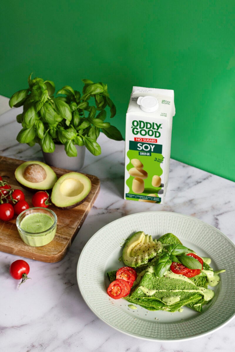 spinach and Oddlygood® Soy Drink into a vibrant batter that cooks up golden and