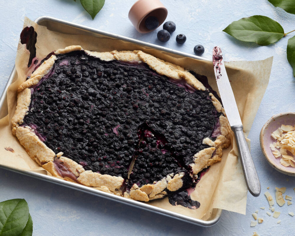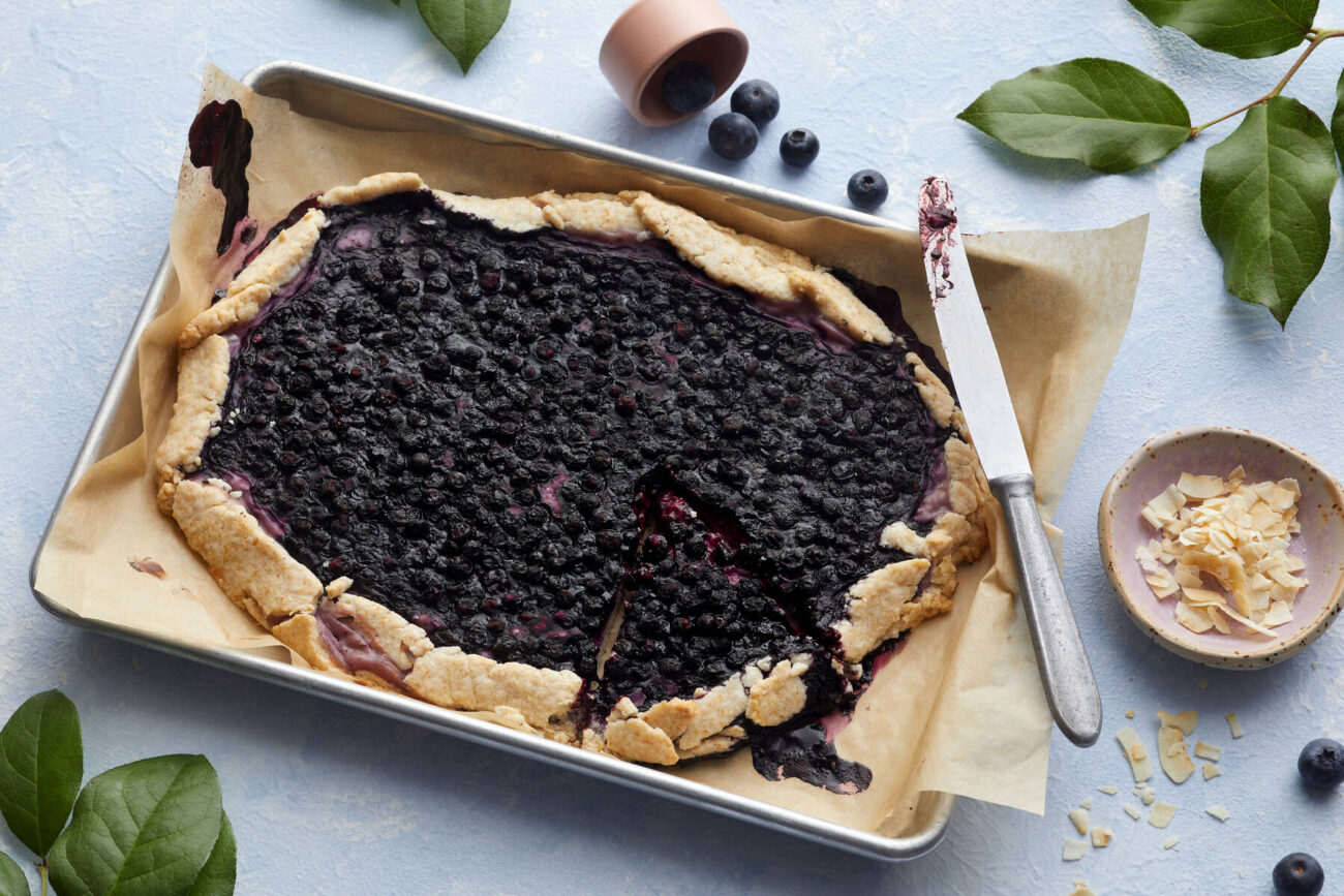- Sekoita mustikoihin perunajauho ja kardemumma. Lusikoi mustikat pohjan päälle.